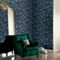 Arthouse Japanese Garden Blue Floral Bird Design Paste The Paper Wallpaper